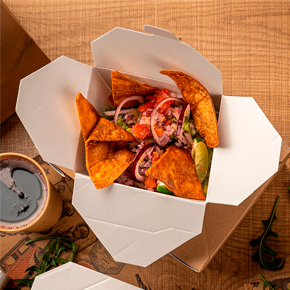 O formato americano, com abas ergonómicas, permite uma montagem intuitiva e rápida. Assim, a equipa reduz passos, evita erros e, por isso, acelera a preparação em horas de pico. Em simultâneo, o fecho estável mantém o conteúdo protegido durante o transporte, enquanto a abertura ampla dá visibilidade ao produto e melhora a experiência de consumo.