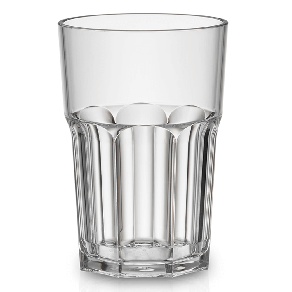Fabricado en SAN (estireno-acrilonitrilo), este vaso de plástico garantiza una durabilidad superior y resistencia a los impactos. Así, evita tener que reemplazar vasos frágiles con frecuencia. Al mismo tiempo, el SAN reproduce la transparencia cristalina del vidrio, creando la ilusión de un vaso ecológico y duradero.