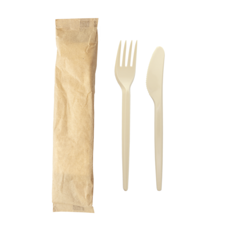 Kit Garfo + Faca em PS Reutilizáveis – Embalagem de Papel
