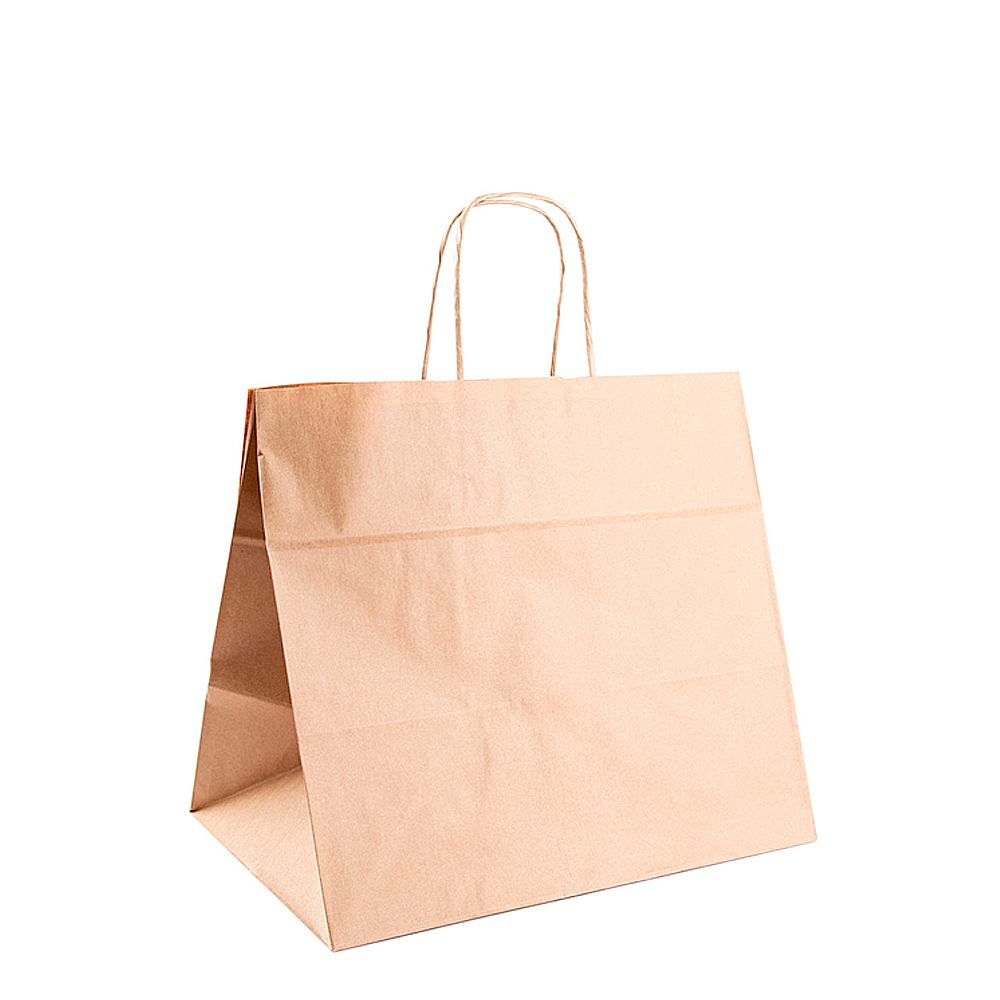 Elige el bolsa de papel kraft Con un asa de 28,5 x 32 x 21 cm, ideal para un embalaje fiable, elegante y fácil de manejar. Gracias a su kraft de calidad, la bolsa conserva su estructura y protege el contenido desde el mostrador hasta su destino. Además, su tono natural transmite sobriedad y realza el producto sin necesidad de embalaje adicional.