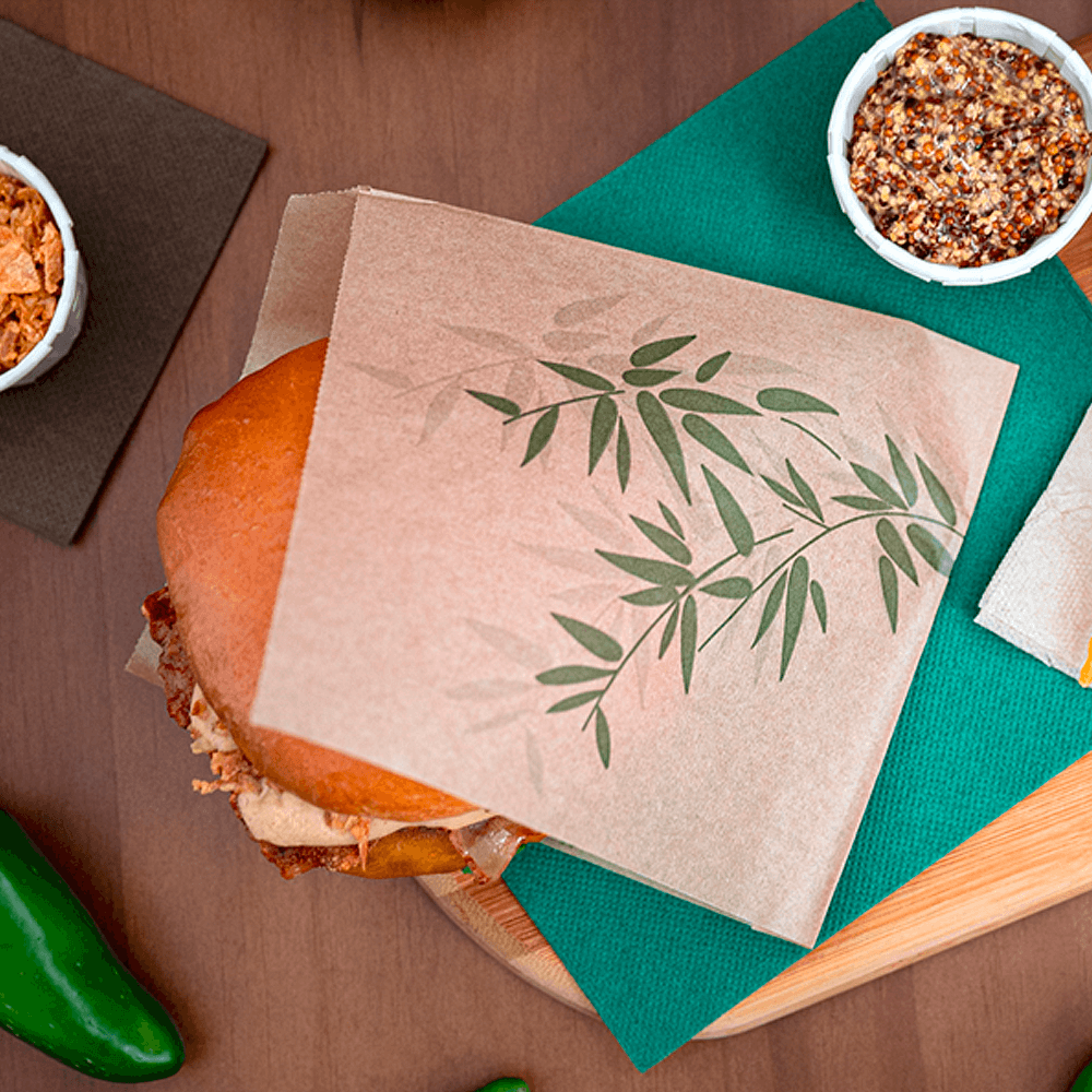 Con unas medidas de 13x14cm, este modelo se adapta sándwiches pequeños, brindis, envolturas estrechos, rebanadas de pastel y bocadillos de hojaldre. Como esto, abarca varias referencias con una única talla, simplificando compras y reposiciones. Asimismo, el sobre de pergamino Es perfecto para encimeras, llevar y entrega.