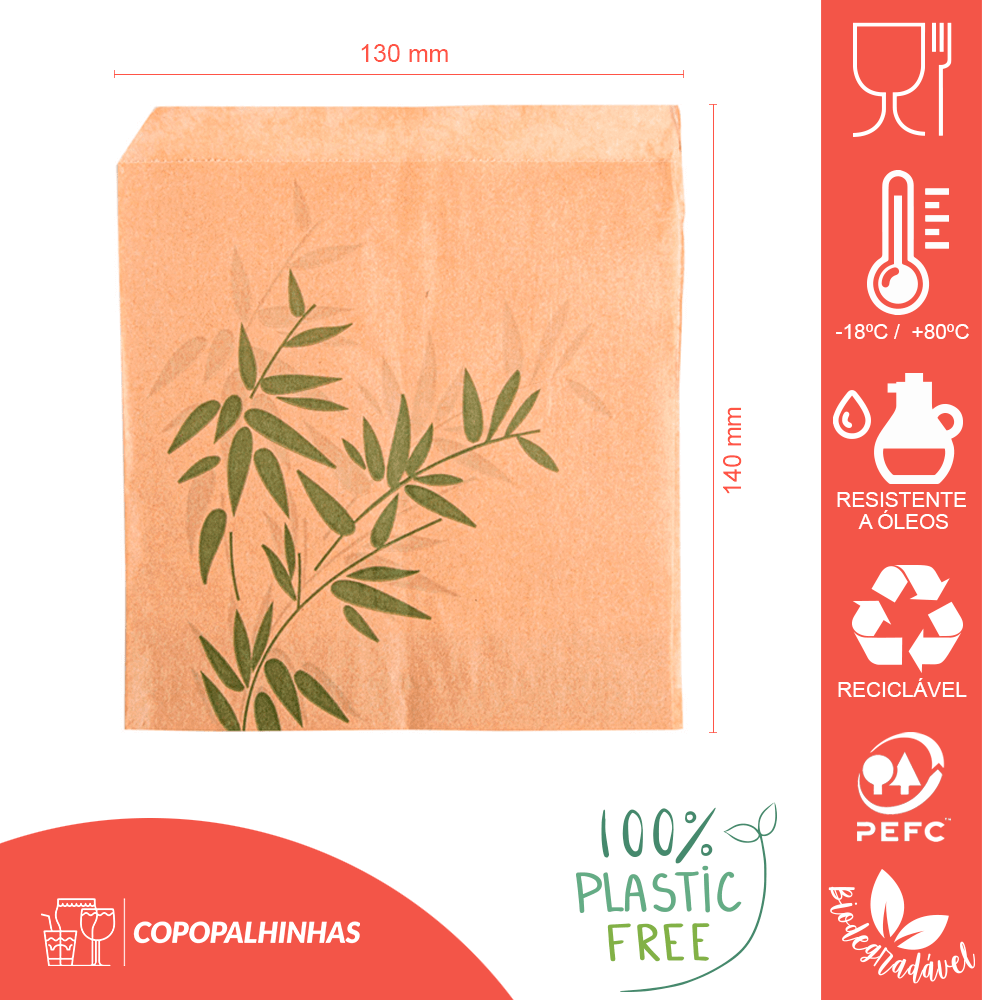 EL bolsa abierta por ambos lados Es apilable, ligero y listo para usar. Como consecuencia, el equipo gana cadencia, utiliza menos servilletas y mantiene el mostrador organizado. Sin embargo, el tratamiento antigrasa ayuda a prevenir manchas en cajas, bolsas de transporte y bandejas.