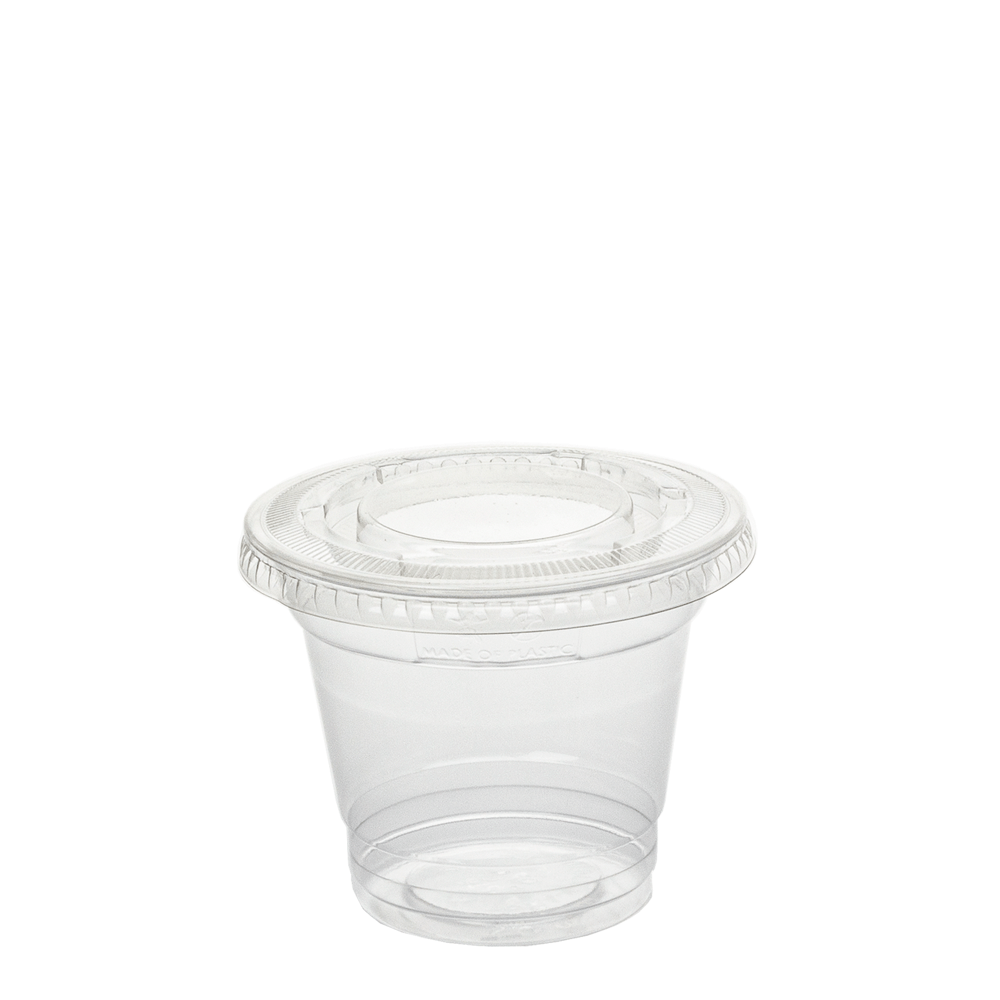 A Taça (Copo) em PET com Tampa Rasa sem Furo 24cl (240ml/8OZ) combina resistência, estética e praticidade. Graças ao seu formato moderno e transparente, valoriza a cor e a textura das bebidas, oferecendo uma apresentação sofisticada em qualquer ambiente.