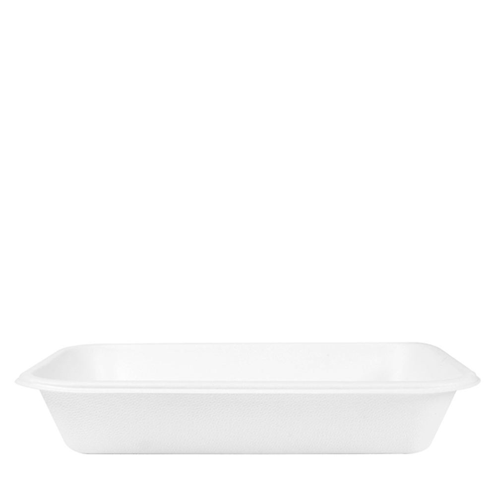 Capacidade: 71cl (710ml). Cor: branca. Material: bagaço de cana-de-açúcar. Tipo: descartável, biodegradável e compostável EN 13432. Propriedades: resistente a óleos e humidade; apta para contacto alimentar; intervalo de utilização típico 0–100 ºC. Aplicações: restauração, catering, eventos, take-away e self-service.