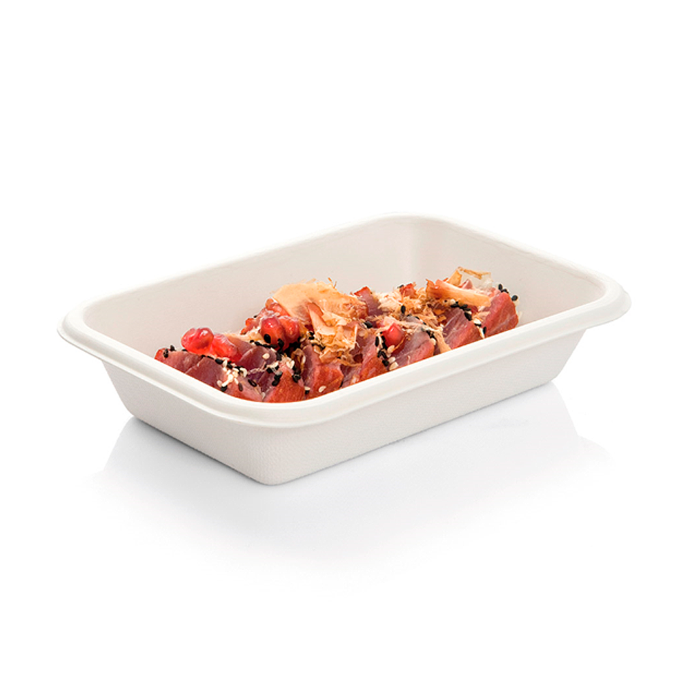 Produzida em bagaço de cana-de-açúcar, esta bandeja utiliza fibras naturais renováveis. Como resultado, reduz o consumo de plástico e contribui para práticas mais sustentáveis. Além disso, é biodegradável e compostável de acordo com a norma EN 13432, o que facilita uma gestão de resíduos mais responsável no dia a dia.