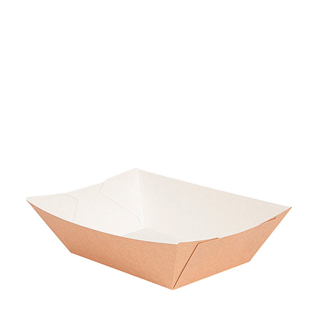 Leve e empilhável, a barqueta facilita mise en place, enchimento e transporte. Entretanto, o formato aberto valoriza o conteúdo e oferece preensão confortável. Como resultado, a equipa ganha tempo, reduz quebras e mantém o ritmo mesmo nas horas de pico. Entretanto, a bandeja cartão ondulado confere um toque natural que combina com propostas rústicas ou contemporâneas.