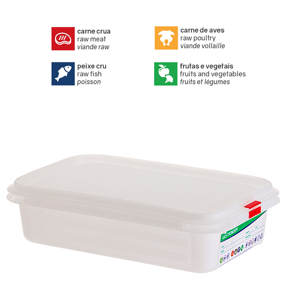 Com 2L, a caixa é indicada para bases, legumes preparados, massas cozidas, saladas, molhos e porções de proteína. Em paralelo, adapta-se a linhas frias, preparação antecipada e transporte diário em catering. Portanto, a mesma referência cobre preparação, conservação e serviço, simplificando compras e stock.