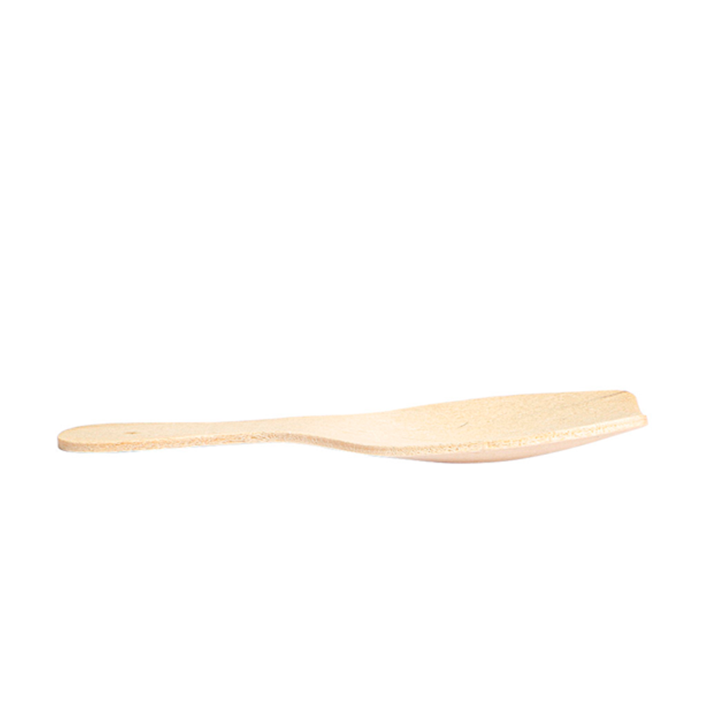 Apesar de ser um talher de madeira, a peça é estável e suporta temperaturas de utilização comuns no serviço de sobremesas frias. Em paralelo, mantém-se firme com toppings e coberturas, evitando ruturas e derrames. Como resultado, o cliente recebe uma experiência limpa e confortável.