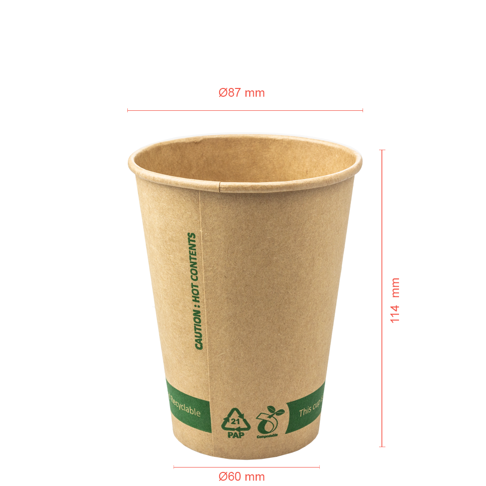 O papel/cartão kraft utilizado na produção deste copo distingue-se pela sua durabilidade e pela composição 100% biodegradável e reciclável. Dessa forma, cada utilização reflete um compromisso genuíno com a proteção do meio ambiente. A robustez do material evita deformações e vazamentos, garantindo que a bebida permaneça à temperatura ideal durante mais tempo. Vê mais copos descartáveis de papel kraft.