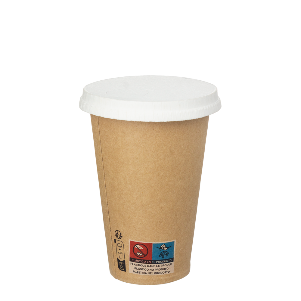 O acabamento castanho transmite uma sensação acolhedora, enquanto a tampa branca cria um contraste visual que chama a atenção de forma subtil. Este copo adapta-se facilmente a qualquer tipo de ambiente, seja num evento corporativo, numa festa de aniversário ou no dia a dia de um estabelecimento comercial. A tampa em papel protege a bebida de possíveis contaminações e impede derrames, o que agrada tanto a quem serve como a quem consome.