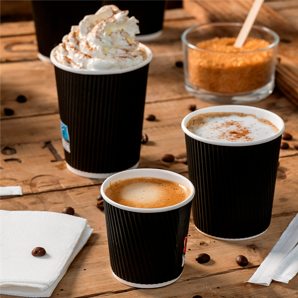 O formato ondulado do copo confere-lhe um toque de elegância e melhora a aderência, evitando possíveis deslizes durante o manuseamento. Além disso, a cor preta adiciona sofisticação, tornando este copo de papel para expresso perfeito para diferentes ocasiões, desde reuniões informais até cerimónias mais requintadas. Por outro lado, o relevo ondulado atua como uma barreira adicional ao calor, proporcionando mais conforto ao segurá-lo. Vê mais copos descartáveis pretos.