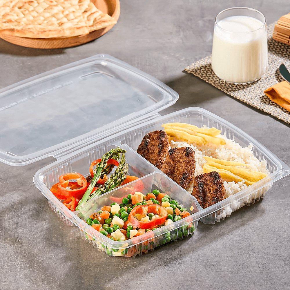 O PP de alta resistência, a embalagem em PP com 3 Divisória, mantém as refeições protegidas, tanto quentes como frias, sem libertar odores ou alterar o sabor. Assim, o cliente recebe sempre a refeição em perfeitas condições. Como o material é robusto e durável, a embalagem pode ser reutilizada várias vezes, o que acrescenta valor económico e ambiental.