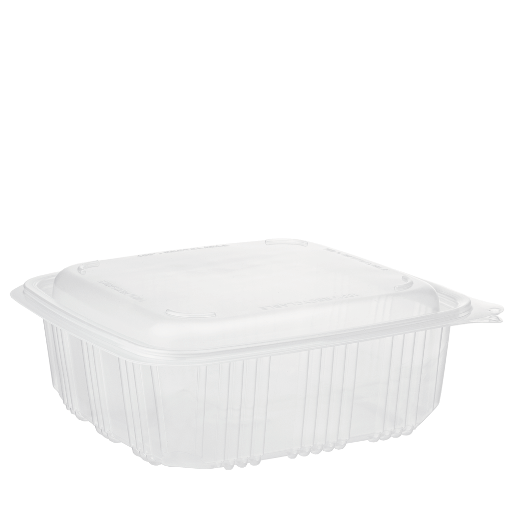 Embalagem em PP com Tampa Incluída 1,2L (1200ml) resistente, própria para alimentos e apta para micro-ondas. É 100% reciclável e reutilizável, possui tampa com fecho seguro e formato quadrado, ideal para takeaway, delivery e refeições completas. Medidas: 195x 185 x 70 mm.