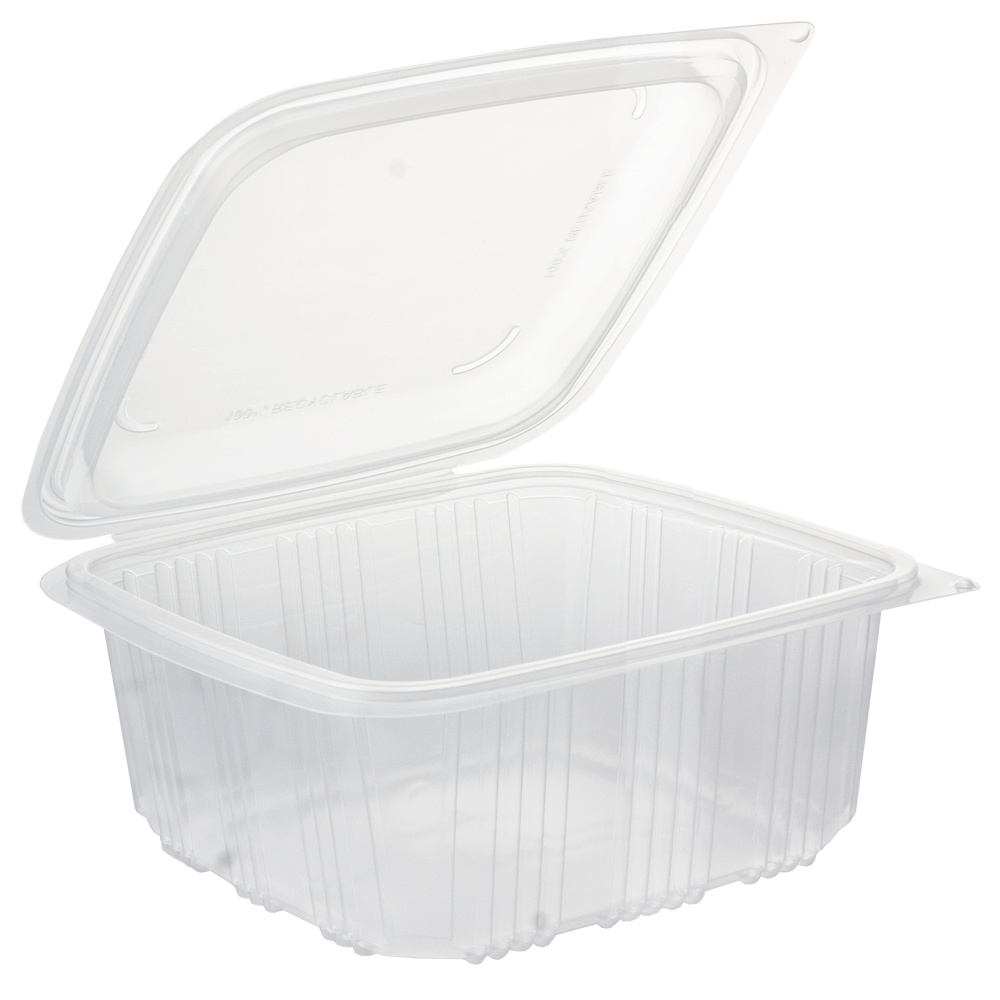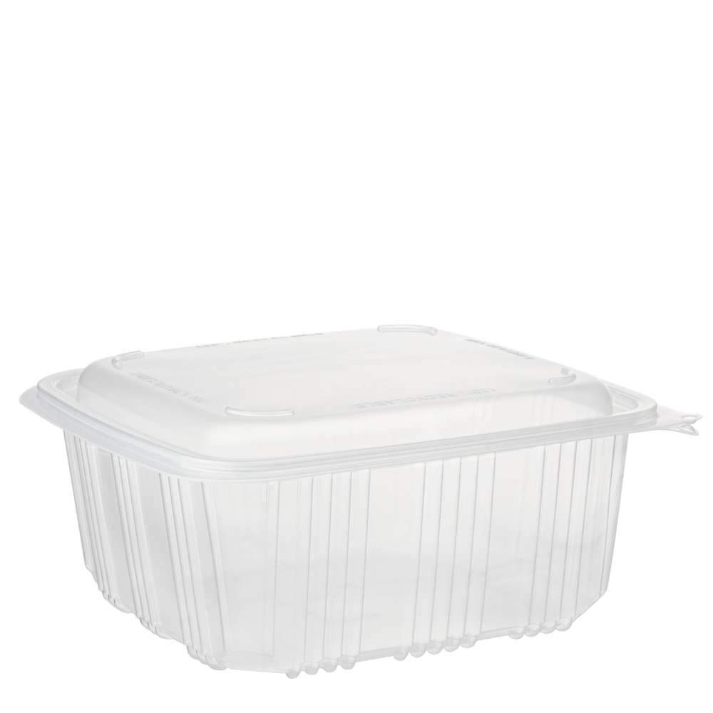 Embalagem em PP com Tampa Incluída 1,5L (1500ml) resistente, própria para alimentos e apta para micro-ondas. É 100% reciclável e reutilizável, possui tampa com fecho seguro e formato quadrado, ideal para takeaway, delivery e refeições completas. Medidas: 195x 185 x 90 mm.