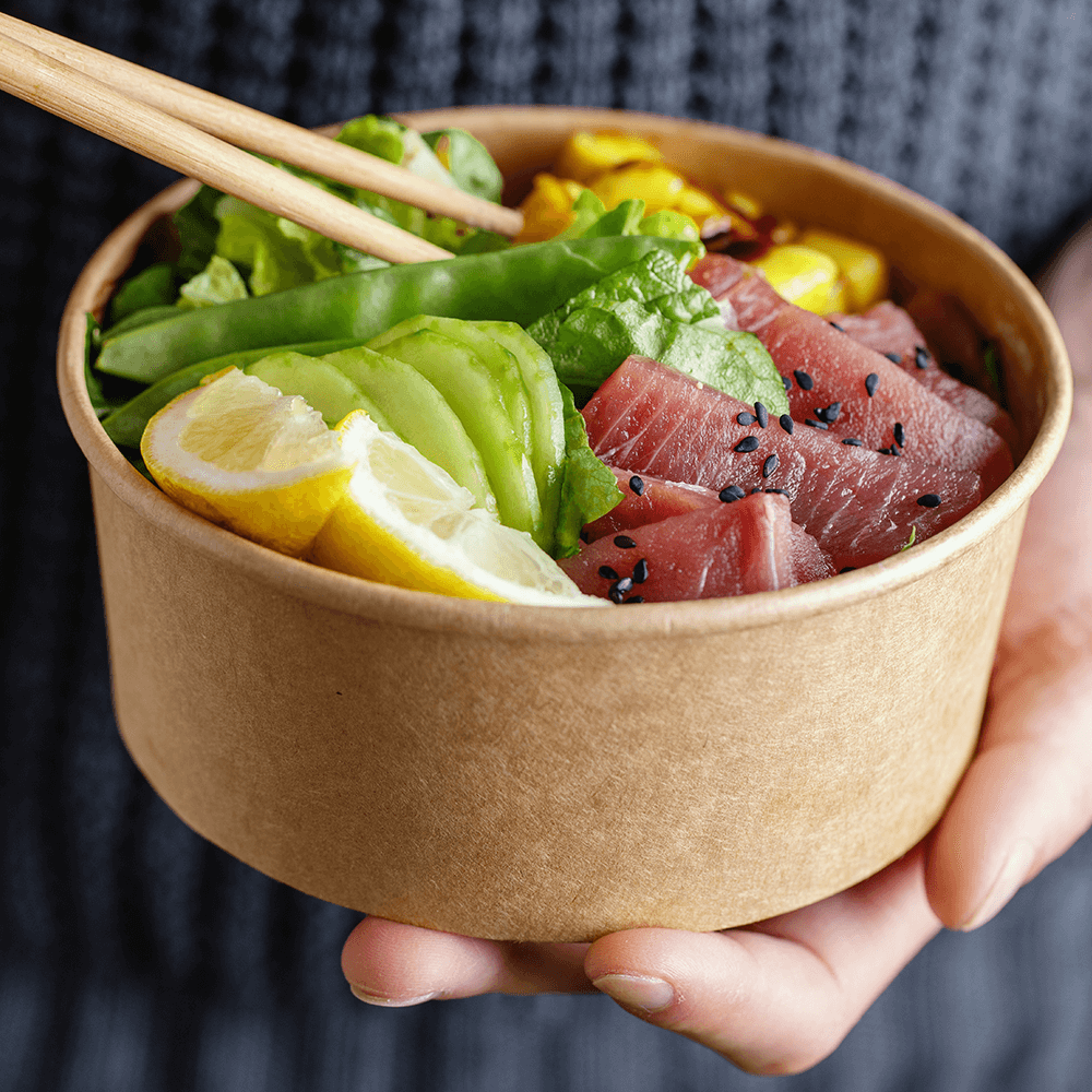 Se procuras uma solução funcional, elegante e amiga do ambiente, a Embalagem / Saladeira em Kraft com Tampa PET 75cl é a opção certa. Adquire já e melhora a experiência dos teus clientes com embalagens de qualidade!