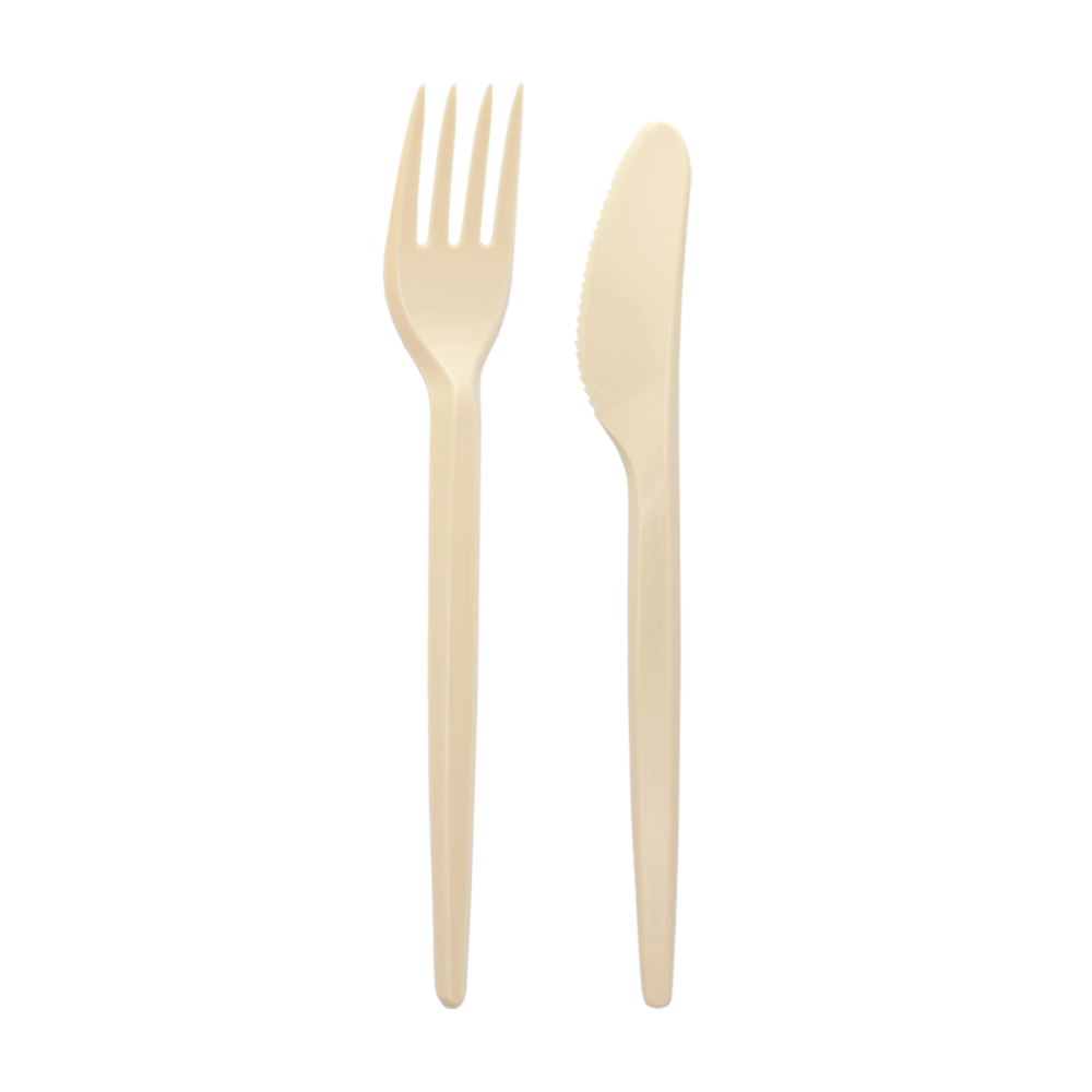 Composição: garfo e faca reutilizáveis. Acondicionamento: embalagem individual transparente. Utilização: restauração, take-away, catering, eventos e refeições em viagem. Características: resistente, leve, higiénico, reutilizável e de fácil transporte. Indicação: próprio para contacto alimentar. Fim de vida: reciclável ou elegível para recuperação energética conforme infraestruturas locais.