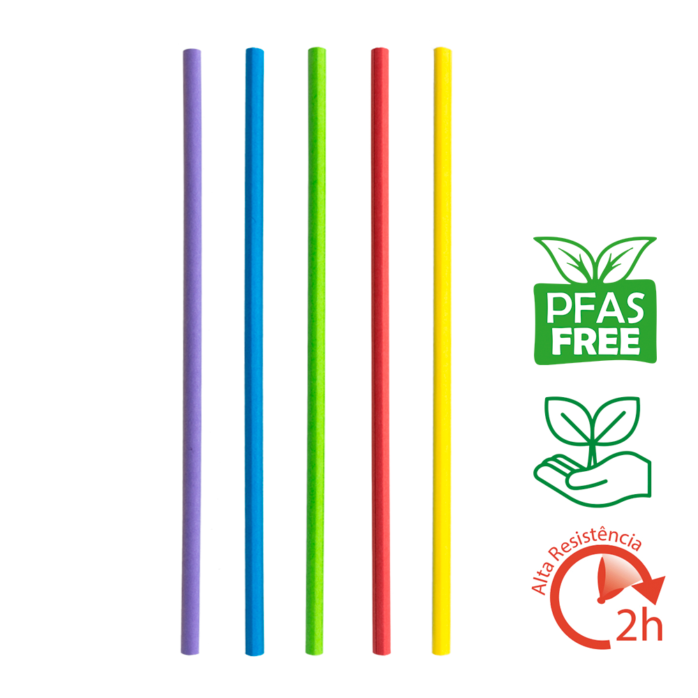 Cada palhinha é projetada para manter a integridade em líquidos por mais de 2 horas, superando os padrões de mercado. Portanto, oferece desempenho e estilo num único produto. Além disso, este produto é livre de PFAS, garantindo segurança para o consumidor.