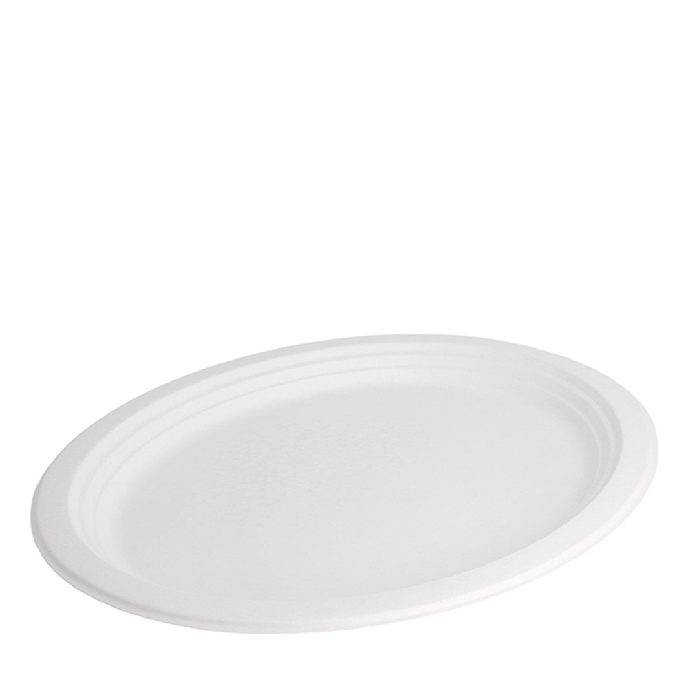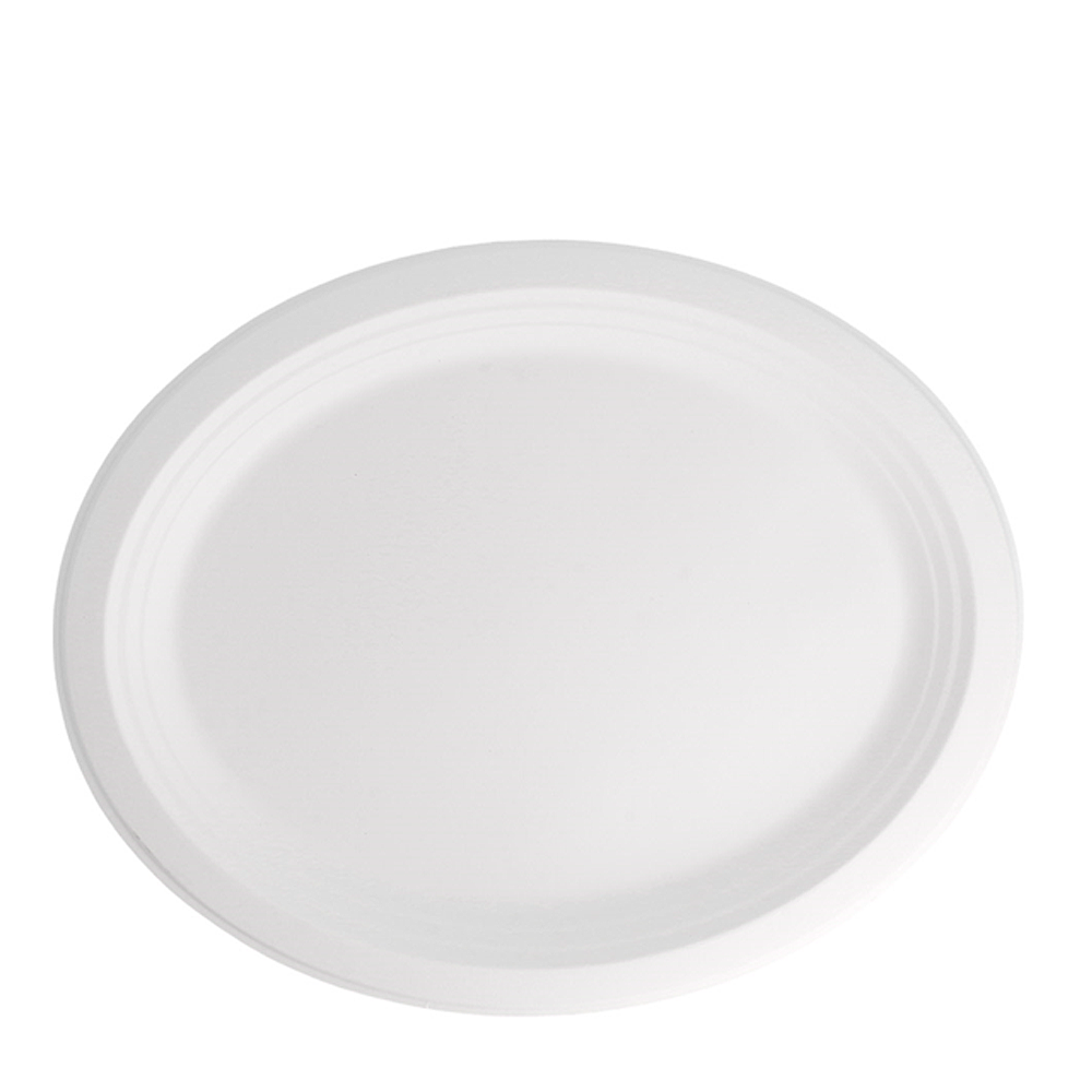 O prato bagaço oval 32×25,5cm junta apresentação cuidada e responsabilidade ambiental. Fabricado em fibra de cana-de-açúcar, substitui descartáveis de plástico sem comprometer a eficiência do serviço. Assim, restaurantes, cantinas, catering e eventos ganham uma solução elegante, robusta e segura para contacto alimentar.