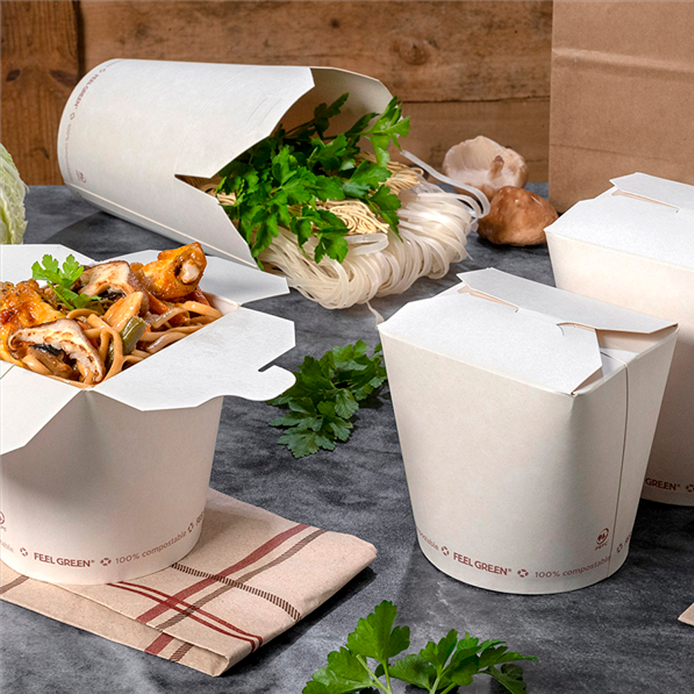 O recipiente multi-uso cartolina Plastic Free branco 96cl (960ml) foi concebido para embalar alimentos com segurança, mantendo a apresentação impecável do seu serviço. Como é feito em cartolina resistente e plastic free, reduz o uso de plásticos convencionais e reforça a imagem sustentável do seu negócio.