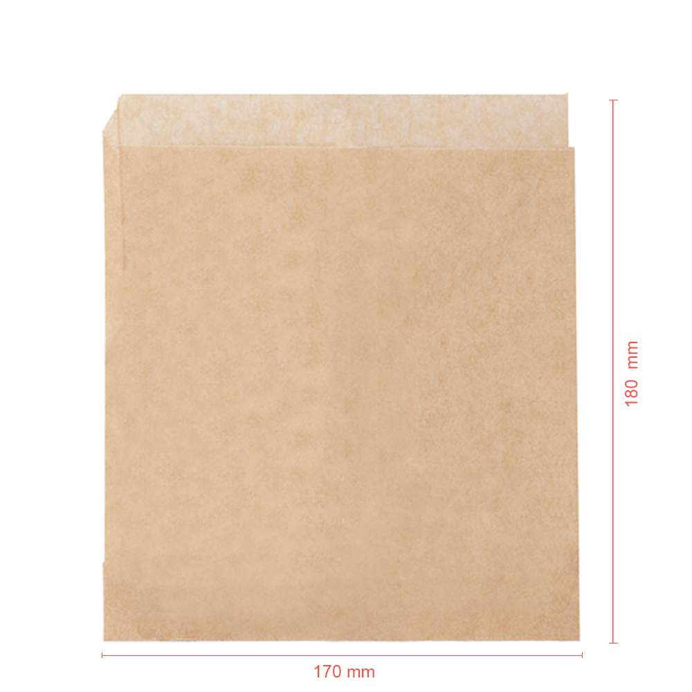 O formato 17x18cm acomoda crepes, tacos, cachorros finos, wraps, sandes e pastelaria. Assim, com um único tamanho cobres vários itens do menu. Do mesmo modo, o saco funciona como pega higiénica dentro de caixas e sacos de transporte.