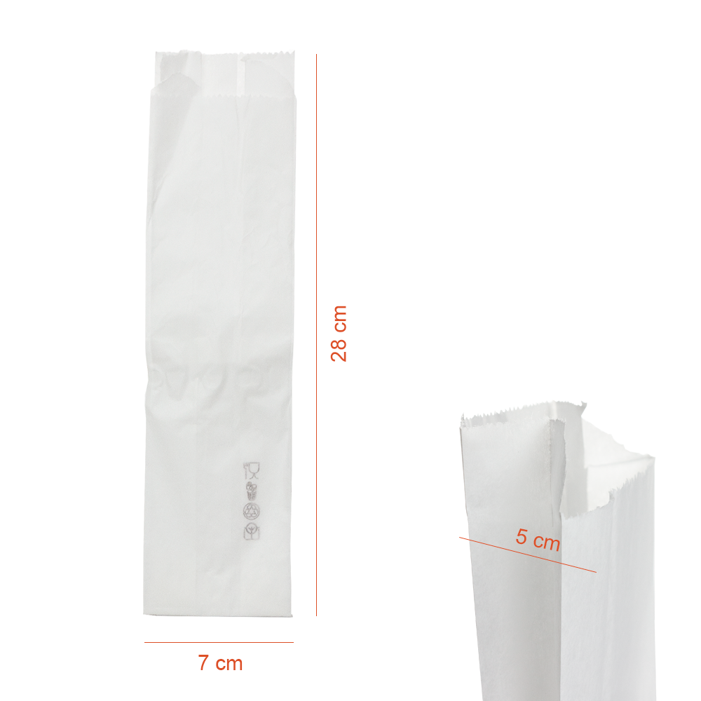 Saqueta de Papel Branco Para Talheres 7x28cm