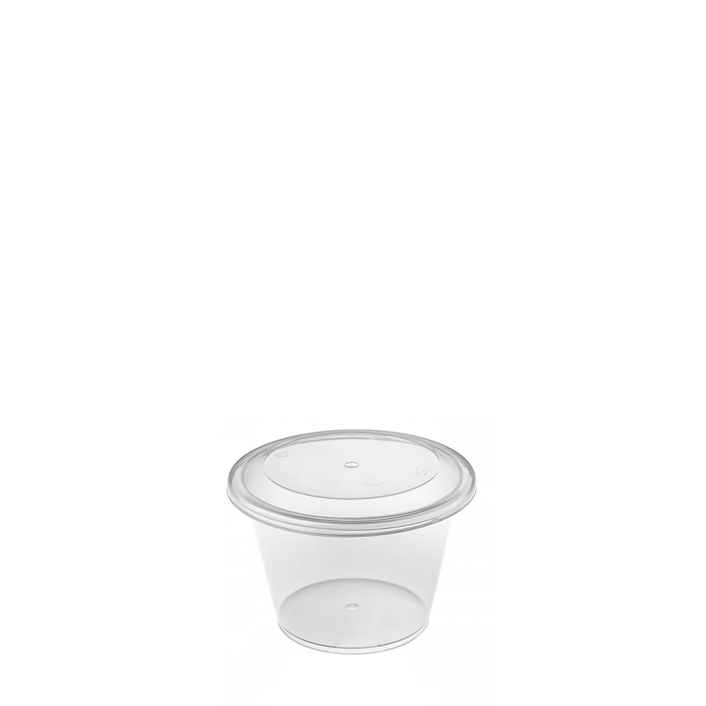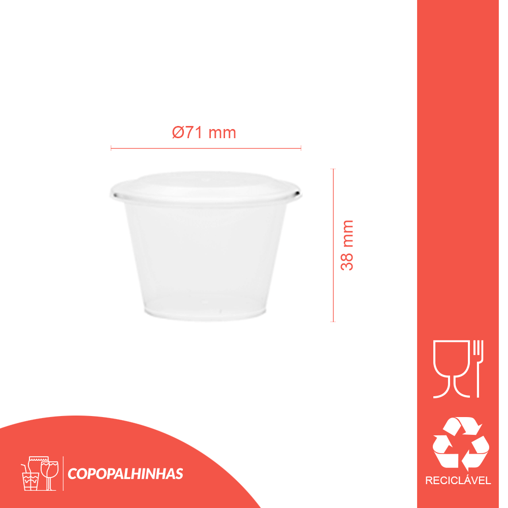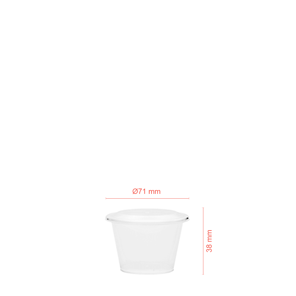 Taça Pequim PP pequena 5cl com tampa: ideal para molhos, doses e amostras. Leve, empilhável e higiénica; fecho seguro e apresentação limpa.